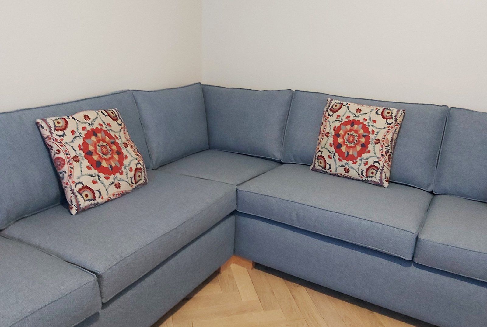 We measured onsite, taking into account any possible access restrictions, to guarantee a no hassle delivery. Our team manufactured the sofa in two sections with removable arms to navigate the access constraints.